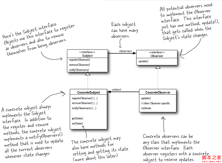 最后让我们记住支撑“观察者模式”的设计原则: Strive for loosely coupled designs between objects that interact.