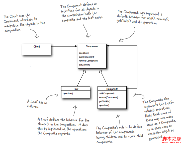 1. Component抽象组件。定义参加组合对象的共有方法和属性,可以定义一些默认的函数或属性。