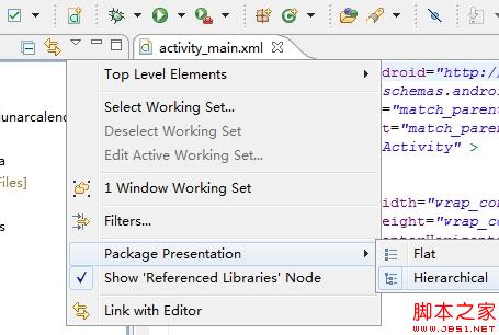 这里,将 Package Explorer 的显示方式改为 Hierarchical