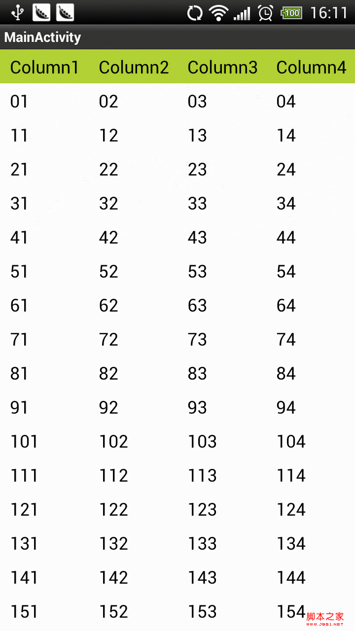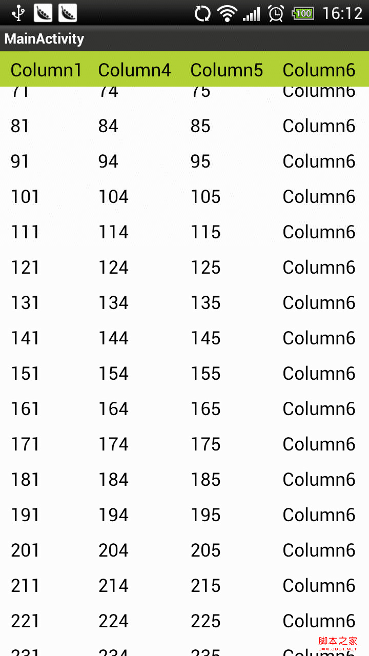 3.2. 捕获 数据行 区 的控件(该控件其实就是ListView控件 )的OnTouch事件,不处理,同样分发给 “列头里的 可滚动部分的控件”。 这两步,就完成了一个小效果,点击表 格的头部和体部都能移动(滚动)行。