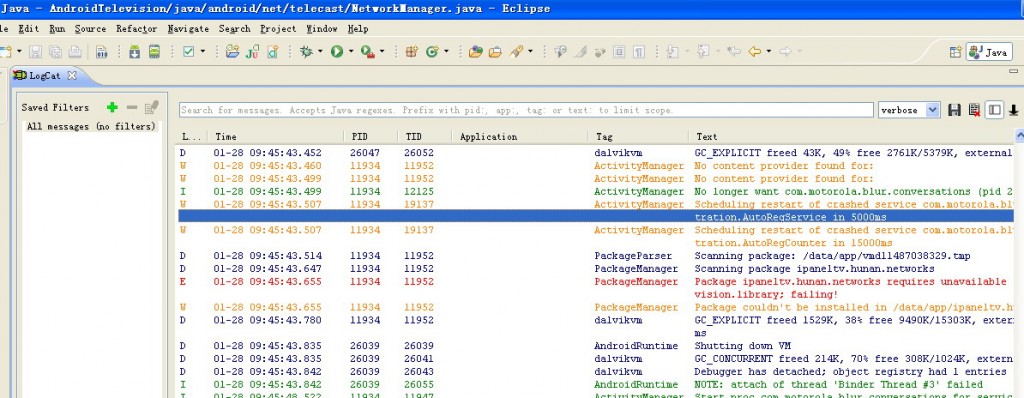 logcat-vtime【Displaythedate,invocationtime,priority/tag,andPIDoftheoriginatingprocess.】