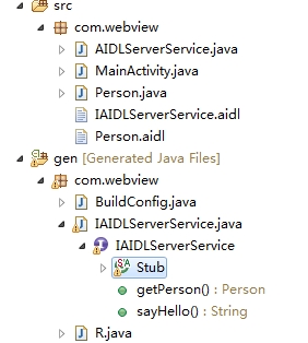 在这个项目中,定义了两个aidl文件,其中Person实现了接口Parcelable,下面是这两个aidl文件的定义: