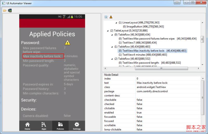 3.当TextView(1)的text内容为“Max inactivity before lock”,则可以确定我们所要的那个TableRow了。(其实就是找对应的index)