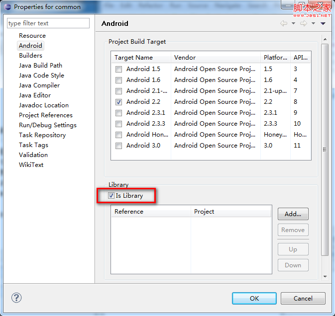 第二步:右键common,选择Properties,在Android标签页,选中"Is Library" ,如下图。