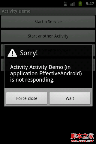 最容易引起误解的就是Service,文档和常识都会认为Service是放在后台用于操作费时运算的,但是实则不然,如果你在Service中做费时操作,同样会引发臭名昭著的ANR(Application Not Responding)。所以如果想把Service当做一个Server,必须在Service用HandlerThread或Thread创建一个Worker线程!