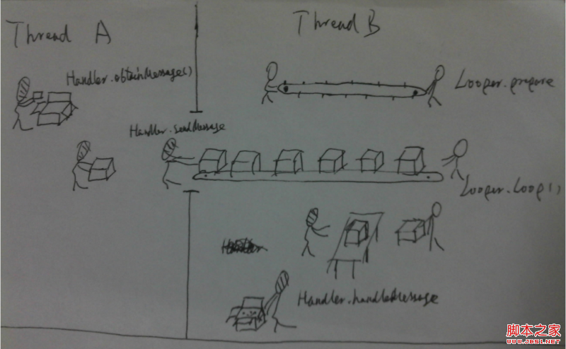 Android当中做了一个特别的限制就是非主线程不能操作UI元素,而一个应用程序是不可能不创衍生线程的,这样一来主线程与衍生线程之间就必须进行通信。由于这种通信很频繁,所以不可能全用变量来标识,程序将变得十分混乱。这个时候消息队列就变得有十分有必要,也就是在每个线程中建立一个消息队列。当A需要B时,A向B发一个消息,此过程实质为把消息加入到B的消息队列中,A就此return,B并不专门等待某个消息,而是循环的查看其消息队列,看到有消息后就去执行。