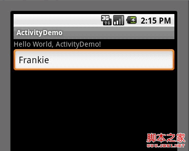 第五步:然后其他不变,运行ActivityDemo程序,在EditText里输入如"Frankie"字符串(如下图:)