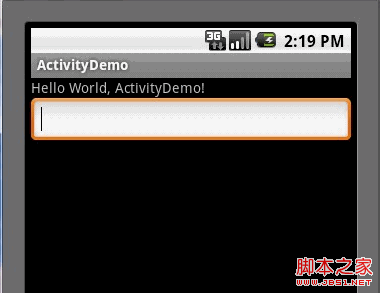 这里我们会引出一个问题,当我们按HOME键,然后再进入ActivityDemo应用时,我们的应用的状态应该是和按HOME键之前的状态是一样的,同样为了方便理解,在这里我将ActivityDemo的代码作一些修改,就是增加一个EditText。