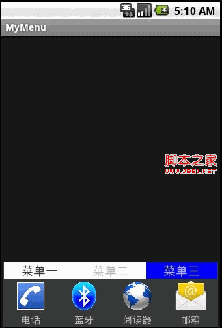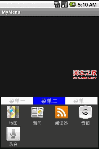 这里是用PopupWindow实现,当然也可以用AlertDialog或者其他自定义对话框等等,也可以改写Menu,还可以用Tab实现。实现的方法很多,但原理是相同的,例如用两个GridView,一个作为菜单栏,一个作为菜单项视图。