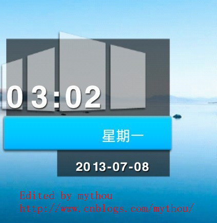 这个时间Widget我是参考(Android应用开发揭秘)书里面的一个demo例子做的,只是把功能和界面完善了一下。下面是这次的效果图: