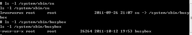 下面我们仔细分析一下程序是怎样获得root权限的,如果对Linux的su命令熟悉的朋友可能知道su程序都设置SUID位,我们查看一下我的手机(已经root破解)上的su权限设置,