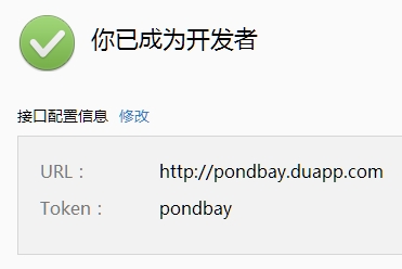此处的URL为创建百度云应用的域名,包括后面的duapp.com,而Token为index.php中定义的值。
