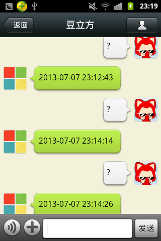 我们在官方的例子上做一些修改,实现了一个发送“?”就能回复当前时间的功能。