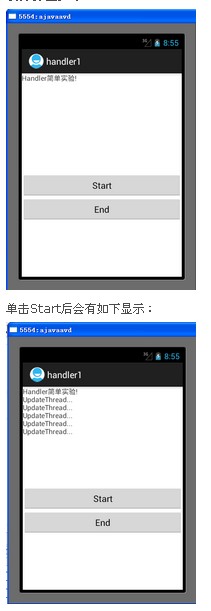 这个例子是最简单的介绍handler使用的,是将handler绑定到它所建立的线程中.