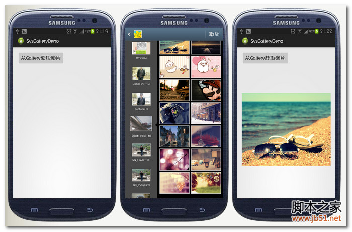 既然已经知道了启动Gallery的Action,和它如何返回选中的数据,那么接下来通过一个简单的Demo来演示一下如何从系统Gallery中获取图片,并把获取到的图片展示到界面的一个ImageView中。