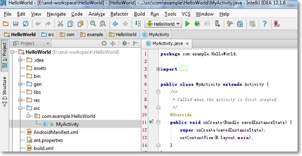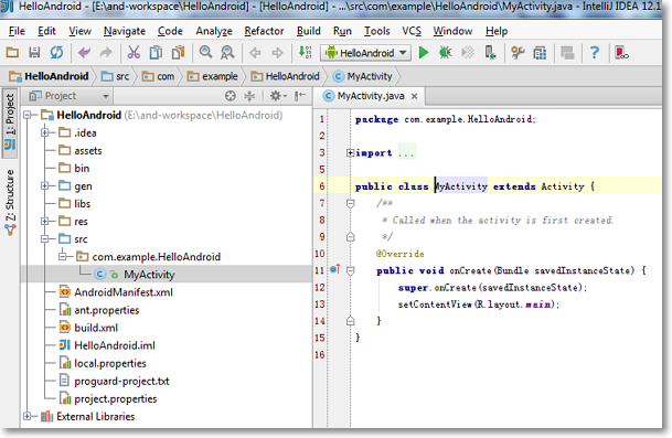 打开IDEA之后并绑定Android SDK,我们就可以使用其开发Android程序了,如下: