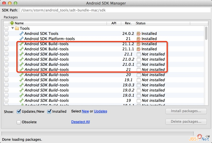 3、导入之后你需要注意以下几个地方 每个Module下的 build.gradle 下的buildToolsVersion,即9GAG/app/build.gradle 和 9GAG/extras/ShimmerAndroid/build.gradle , 可以打开 SDK Manager 查看本地你安装的 SDK Build-tools, 如下图,如果相应版本没有安装请先下载。