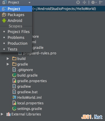 可以看到和Eclipse的目录结构有很大区别,Studio一个窗口只能有一个项目,而Eclipse则可以同时存在很多项目,如果你看着不习惯可以点击左上角进行切换