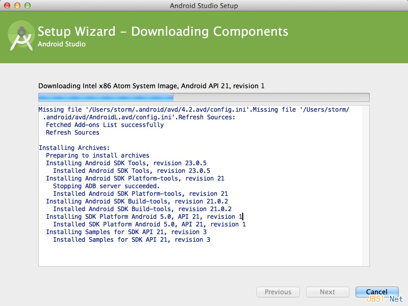 之后便到下载组件页面,这个过程需要翻墙,而且依赖你的网速,时间有点久,大家耐心等待…