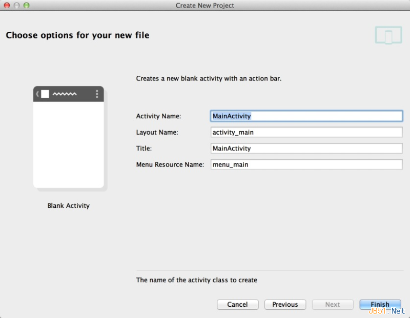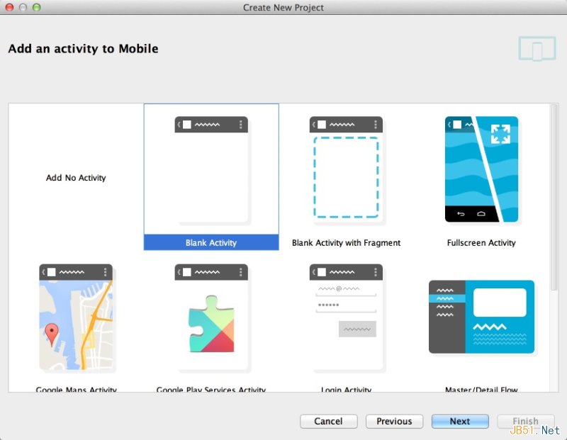 这个页面选择一个Activity模板,和Eclipse很像,我们直接选择一个Blank Activity好了