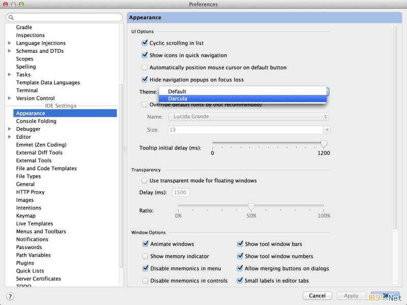 到Preference -> Appearance下更改主题到Darcula