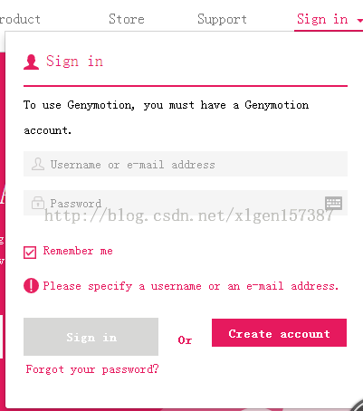 (2)首先去Genymotion的官网注册一个账号,这个账号是有用的 请记着你的账号和密码(我用的是QQ好注册的)