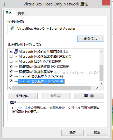 (16)如果你的机器没有安装VMware则可以省去上一步,然后在VirtualBox Host-Only Network这一项上,点击右键--属性--找到IPV4--双击