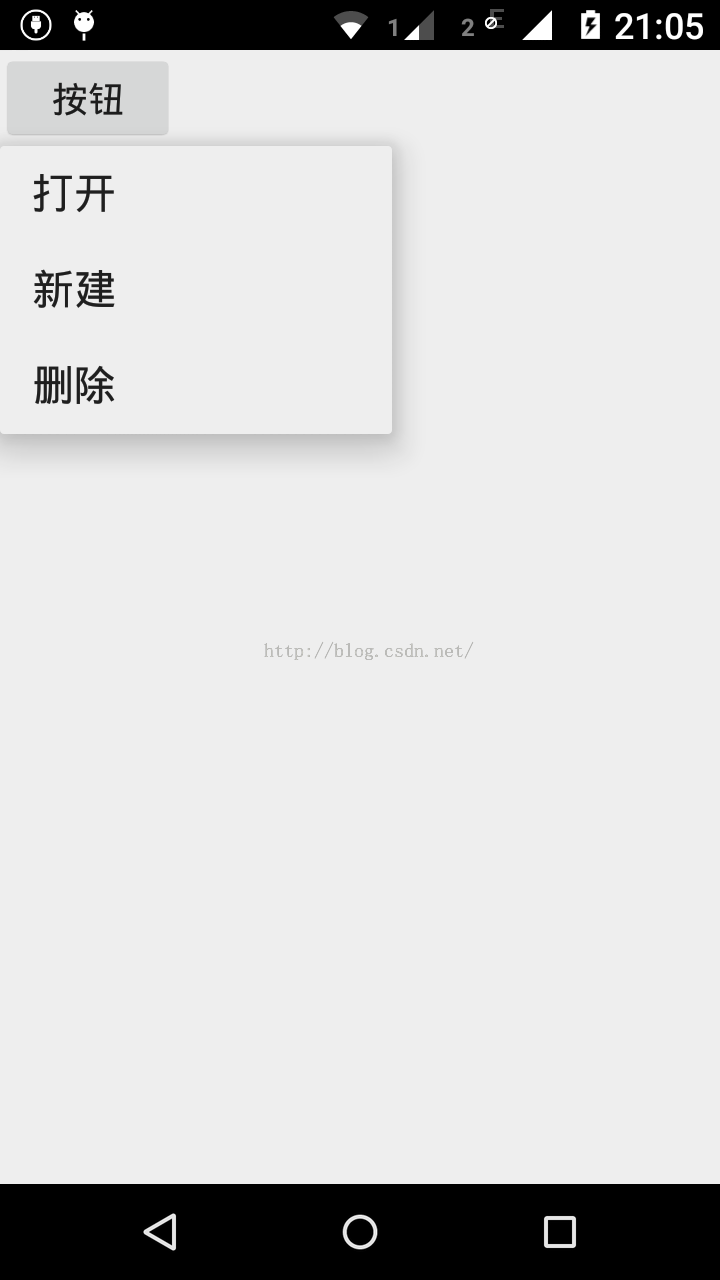 现在给出实现上图PopupMenu的代码。 本例是一个普通的Button触发弹出PopupMenu。