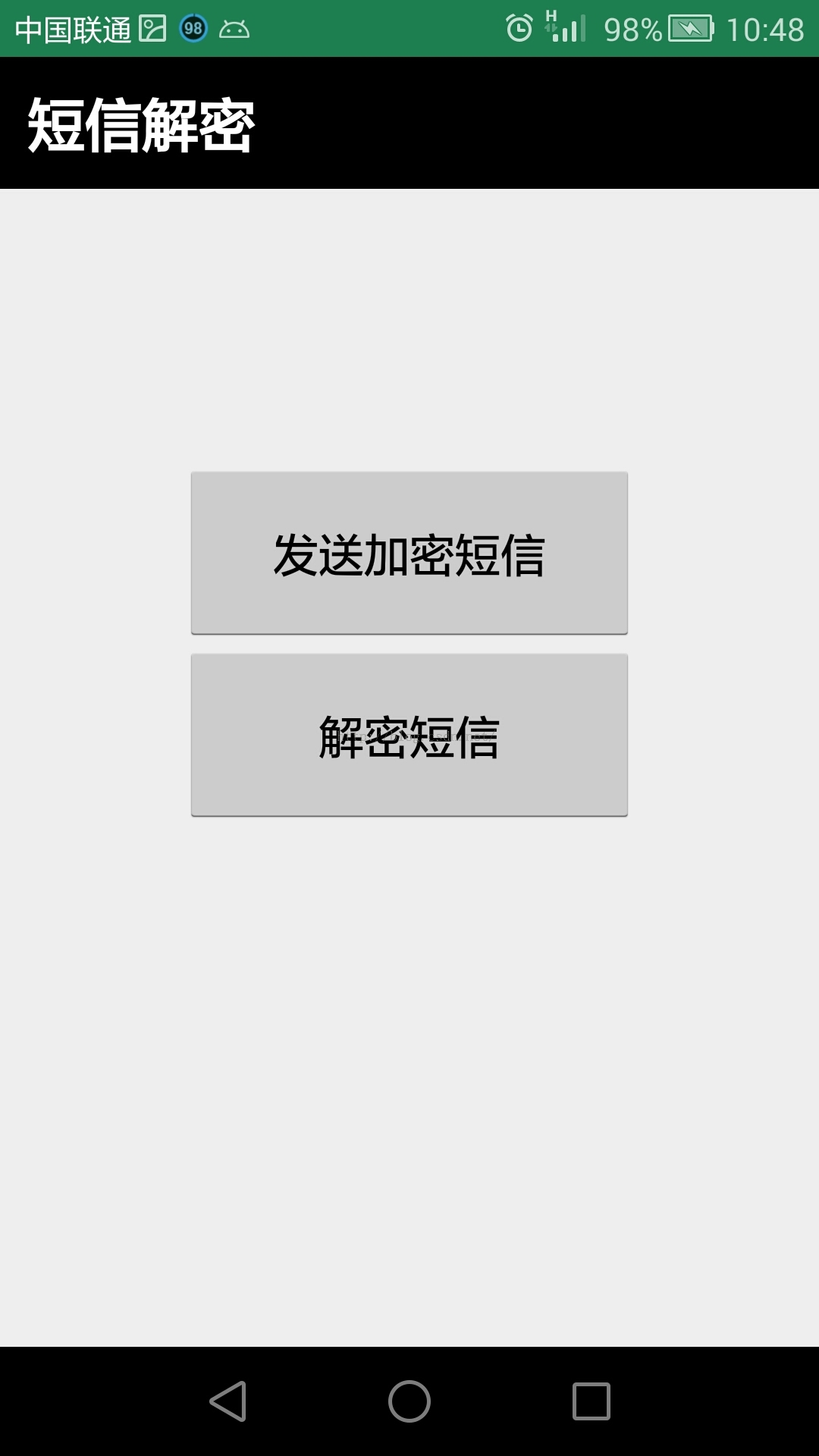 短信加密此类功能由于新手学习的需求量较小,所以在网上很少有一些简单的demo供新手参考。小编做到此处也是花了比较多的时间自我构思,具体的过程也是不过多描述了,讲一下demo的内容。