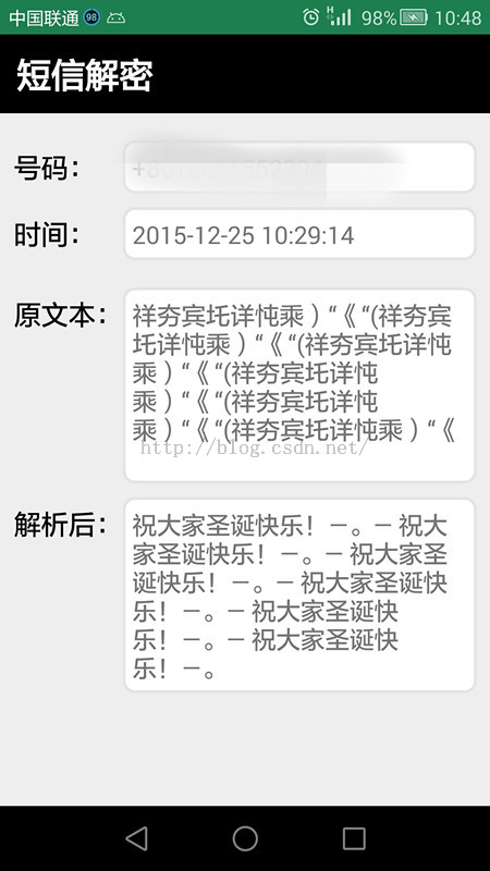 以上就是本文的全部内容,android实现短信加密,实现发送加密短信、解密本地短信,希望对大家的学习有所帮助。
