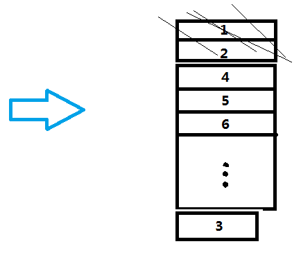 这时候我们会有一个以为,为什么遍历一下就可以将使用最少的bitmap缓存给剔除,不会误删到最近使用的bitmap缓存吗?首先,我们要清楚,LruMemoryCache定义的最近使用是指最近用get或put方式操作到的bitmap缓存。其次,之前我们直到LruMemoryCache的get操作其实是通过其内部字段LinkedHashMap.get(...)实现的,当LinkedHashMap的accessOrder==true时,每一次get或put操作都会将所操作项(图中第3项)移动到链表的尾部(见下图,链表头被认为是最少使用的,链表尾被认为是最常使用的。),每一次操作到的项我们都认为它是最近使用过的,当内存不够的时候被剔除的优先级最低。需要注意的是一开始的LinkedHashMap链表是按插入的顺序构成的,也就是第一个插入的项就在链表头,最后一个插入的就在链表尾。假设只要剔除图中的1,2项就能让LruMemoryCache小于原先限定的大小,那么我们只要从链表头遍历下去(从1→最后一项)那么就可以剔除使用最少的项了。