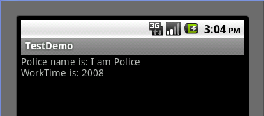 4.在包com.andy.testdemo中修改TestActivity.java类,同时在该包中添加类SerializableDemo和ParcelableDemo,分别继承了Activity类和分别显示Person对象和Police对象的数据。代码如下: