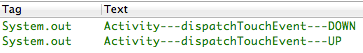 之前提过,所有事件处理方法的返回值都是boolean类型的,现在我们来修改这个返回值,首先从Activity开始,根据之前的日志输出结果,首先执行的是Activity的dispatchTouchEvent方法,现在将之前的返回值super.dispatchTouchEvent(event)修改为true,然后重新编译运行并点击按钮,看到如下的日志输出结果。