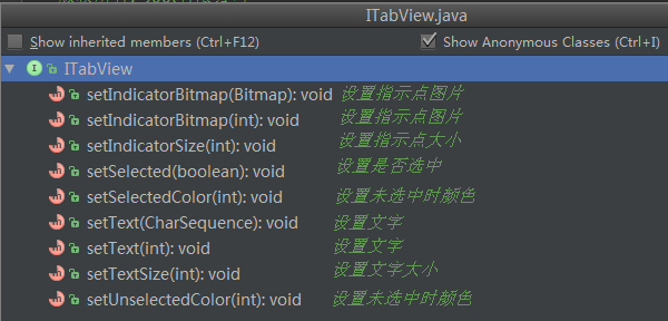 通过需求分析,我们可以定义如下的Tab子View操作接口: