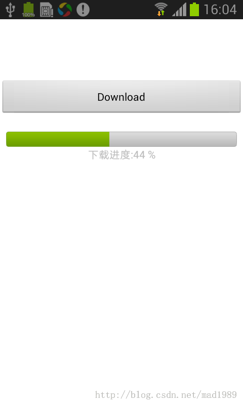 mMessageView.setText("下载进度:" + progress + " %");