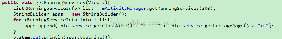 ③getRunningServices()获取系统运行中的后台service。