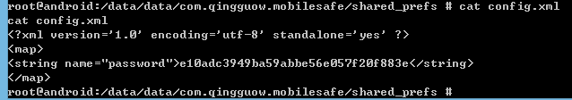 一般的手机没有root权限,进不去data/data目录,当手机刷机了后,拥有root权限,就可以进入data/data目录,查看我们保存的密码文件,因此我们需要对存入的密码进行MD5加密