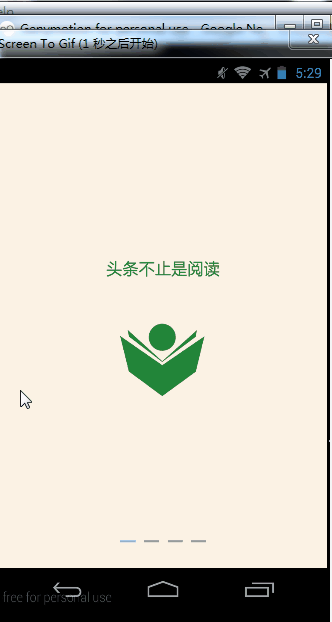 2).LauncherActivity 首先判断是否第一次启动,如果不是第一次直接进入首页,是第一次启动就初始化ViewPager,设置适配器,设置ViewPager滑动监听,然后添加底部的。。。View。 在Viewpager监听函数里面改变底部图标的选中状态,如果是最后一页显示“开启我的头条”按钮。