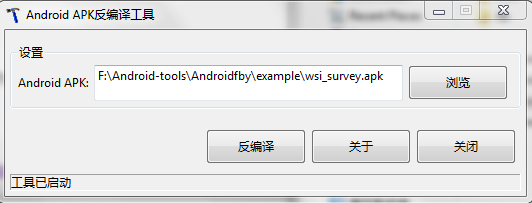 首先,下载上述反编译工具包,打开Androidfby目录,双击Android反编译工具.exe,就可以浏览打开要反编译的apk