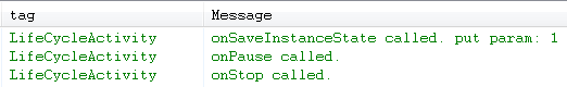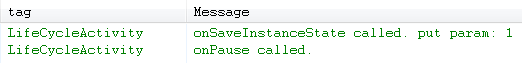 我们看到,此时onSaveInstanceState方法在onPause之前被调用了,并且注意,退居后台时,onPause后onStop相继被调用。