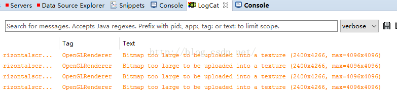 甚至有的图片还没有显示出来如img_4,看一下logcat,相信大家会发现原因: