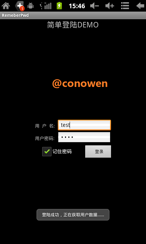 默认勾选“记住密码”复选框,点击“登陆”按钮,一旦成功登陆,就保存用户名和密码到SharedPreferences文件中。