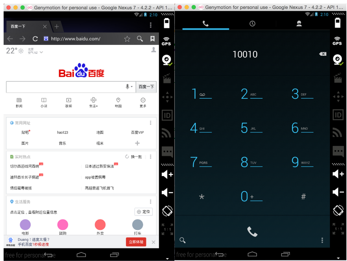 你可以以协议的方式打开系统的某些功能,比如打开系统的浏览器,系统的拨号键盘等。在iOS也是这样,不过是通过Application对象打开某些协议如tel://拨号协议等来调用系统功能。在安卓系统中也可以通过Intent对象来做这些操作。