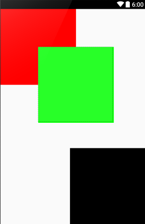 在代码里,有三个View,而在运行结果上只能看到两个View,一个黑色和一个绿色。这是因为红色的View被黑色的View盖住了。