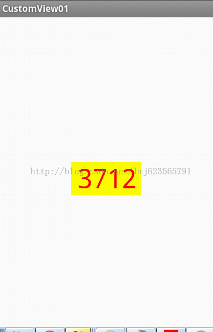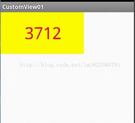 <RelativeLayout xmlns:android="http://schemas.android.com/apk/res/android" xmlns:tools="http://schemas.android.com/tools" xmlns:custom="http://schemas.android.com/apk/res/com.example.customview01" android:layout_width="match_parent" android:layout_height="match_parent" > <com.example.customview01.view.CustomTitleView android:layout_width="wrap_content" android:layout_height="wrap_content" custom:titleText="3712" android:padding="10dp" custom:titleTextColor="#ff0000" android:layout_centerInParent="true" custom:titleTextSize="40sp" /> </RelativeLayout>