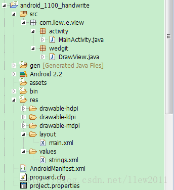 乍一看布局文件中并没有使用我们自定义的DrawView,不过不用着急我是使用了通过在FrameLayout中动态添加的方法把DrawView添加进来的,好了,那紧接着看看MainActivity中的代码实现吧: