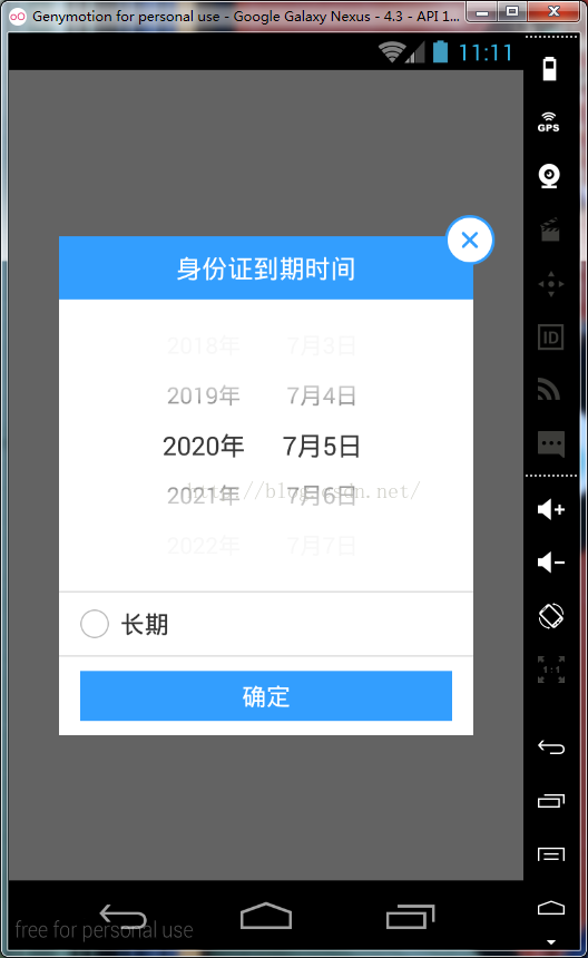 dateValidChooseDialog.setDateDialogTitle("身份证到期时间");