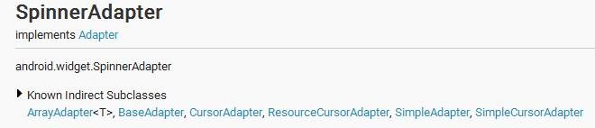 1. setAdapter(SpinnerAdapter adapter) ,从类的继承关系上看,ArrayAdapter是SpinnerAdapter接口的间接实现类