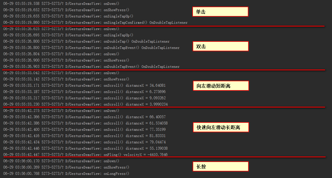 GestureDetector类可以让我们快速的处理手势事件,如点击,滑动等。