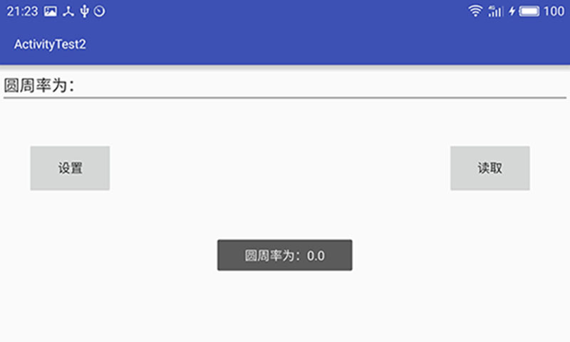 <?xml version="1.0" encoding="utf-8"?> <RelativeLayout xmlns:android="http://schemas.android.com/apk/res/android" xmlns:tools="http://schemas.android.com/tools" android:layout_width="match_parent" android:layout_height="match_parent" tools:context="com.king.activitytest2.MainActivity"> <EditText android:layout_width="match_parent" android:layout_height="wrap_content" android:id="@+id/edit1"/> <Button android:layout_width="wrap_content" android:layout_height="wrap_content" android:text="设置" android:id="@+id/btn_Set" android:layout_marginTop="46dp" android:layout_below="@+id/edit1" android:layout_alignParentLeft="true" android:layout_alignParentStart="true" android:layout_marginLeft="35dp" android:layout_marginStart="35dp" /> <Button android:layout_width="wrap_content" android:layout_height="wrap_content" android:text="读取" android:id="@+id/btn_Read" android:layout_alignTop="@+id/btn_Set" android:layout_alignParentRight="true" android:layout_alignParentEnd="true" android:layout_marginRight="46dp" android:layout_marginEnd="46dp" /> </RelativeLayout>
